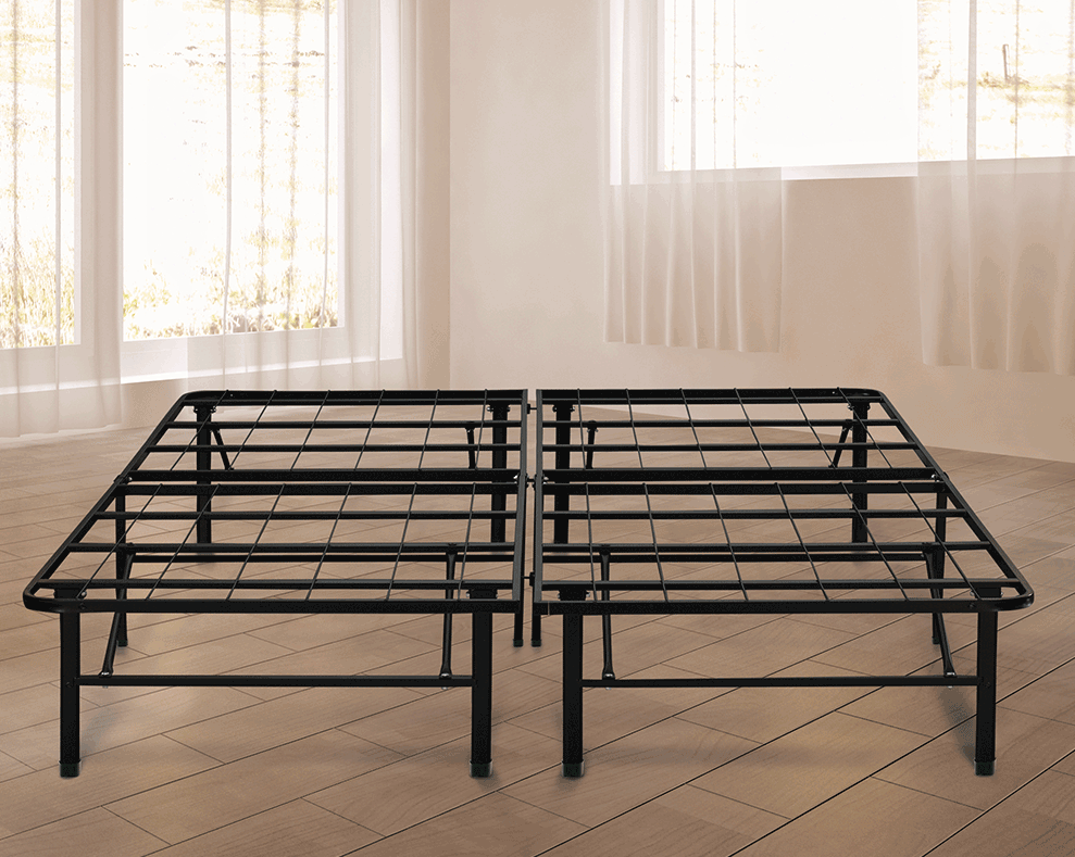 This heavy duty Platform Bed Frame eliminates the need for a metal frame and box spring or foundation. The 14″ height allows for ample under bed storage space. Our sturdy steel construction prevents your mattress from sagging or squeaking. You will also appreciate the compact size, which makes this frame easy to fit into tight spaces, such as elevators or narrow stairwells, where a rigid foundation may not fit.