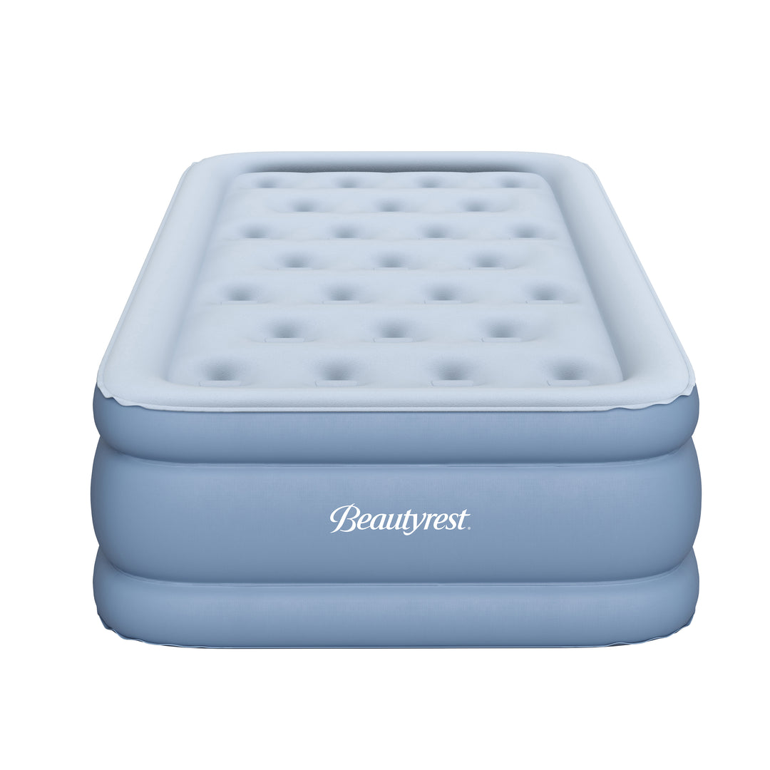 The Beautyrest® Posture-Lux™ air bed was designed with a unique support structure giving you contouring comfort and pressure relief similar to a traditional every night mattress. The hands-free pump will inflate to your desired firmness level, then will also deflate quickly when you are ready to store away in the included heavy-duty carry and storage bag. You or your guests are sure to sleep soundly on the Posture-Lux™ guest air mattress from Beautyrest®.