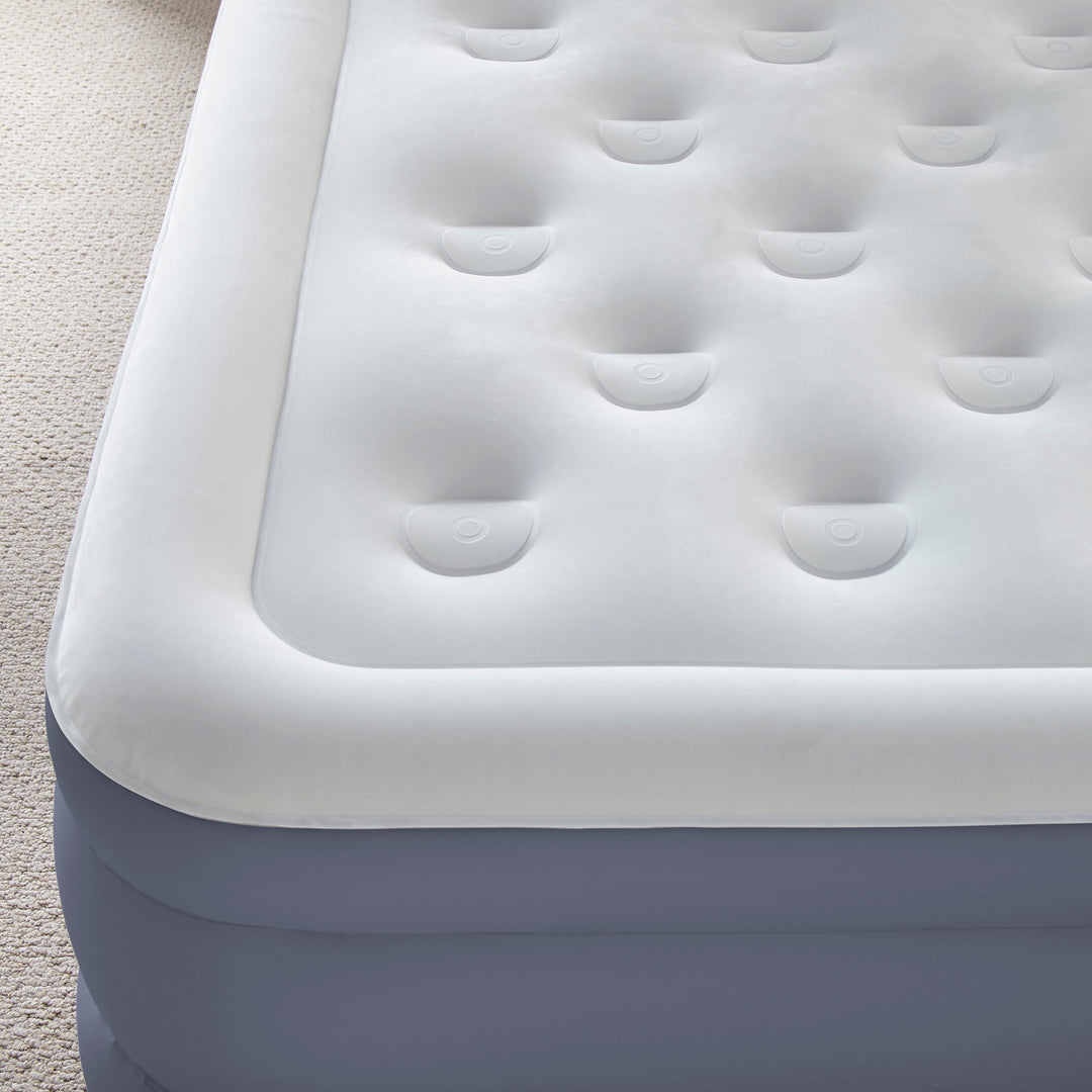 - Convenient inset pump: fast inflate/deflate powerful electric pump achieves higher firmness for all night support. Inflate and deflate in just over 2 minutes.