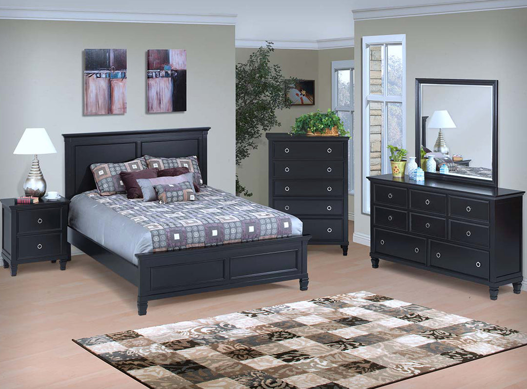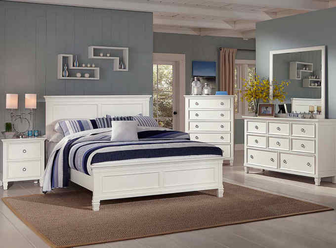 The Tamarack bed is available in Black or White finish in the 4 Piece group, which includes the bed, dresser, mirror and 1 nightstand, in Twin, Full, Queen and King size. Choose additional pieces or buy individual pieces. Delivery is free in the St. Louis metro area on purchases over $799.