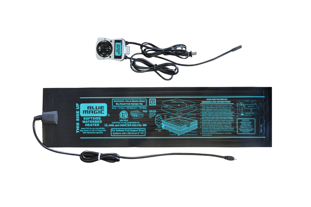 The Blue Magic solid state 120 watt waterbed heater gives you precise control over the temperature of your mid fill or deep fill softside waterbed mattress. The Blue Magic waterbed heater comes complete with a solid state heater control and a premium wire alloy waterbed heating pad. Studies show that a temperature controlled sleep environment provides multiple health benefits and aids in achieving deep sleep. The medical benefits of heat therapy to improve circulation and penetrate muscles for recovery and relaxation is well documented. When compared to electric blankets, which can have significant temperature swings of several degrees that affect sleep, the Blue Magic waterbed heater offers consistent warmth within 1/8 degree of your set point.