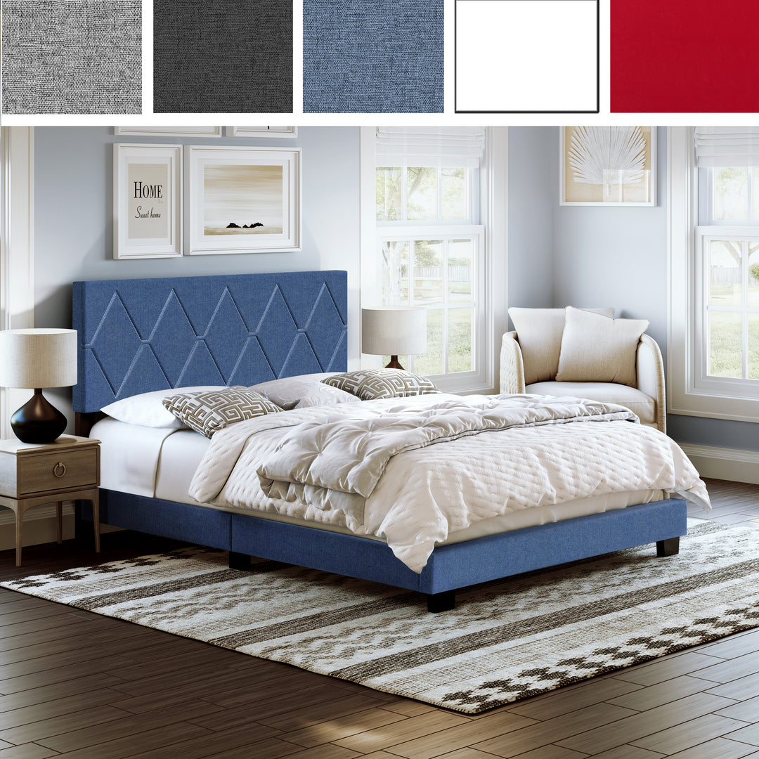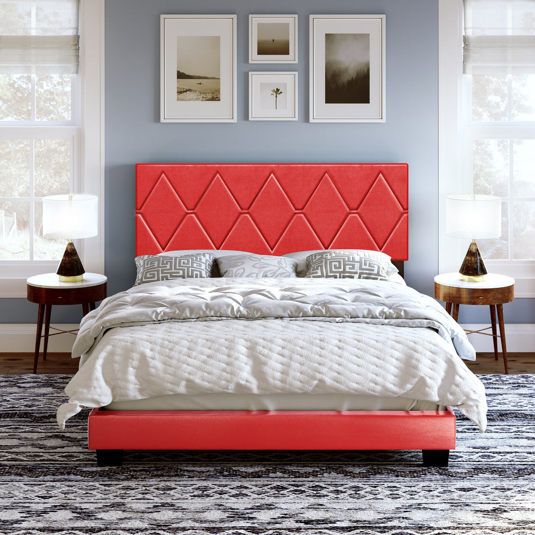 Revamp your bedroom today with the Diamond and Charlat Upholstered Platform Beds. These contemporary upholstered platform bed features exquisite diamond stitching detail on the headboard. Available in a variety of unique colors and stitching options, you’re sure to find an option that suits your preference. The Diamonds uses a durable, yet attractive, upholstered linen design while the Charlat features a a high quality contemporary faux leather. Both beautiful platform beds pair with any type of décor, no matter the aesthetic. Sturdy and built to last, they’re sure to add style and class to any master bedroom or guest room for countless years to come.