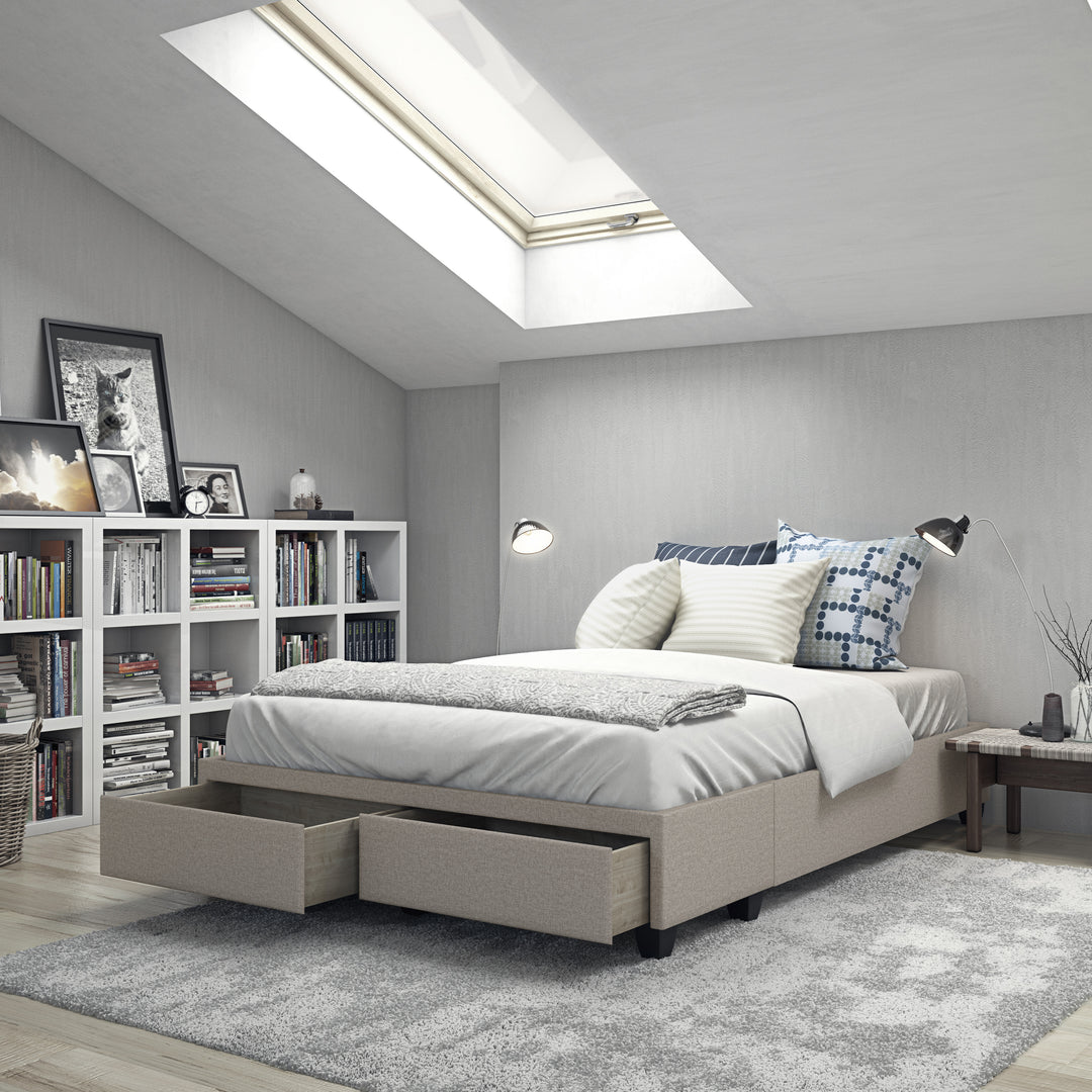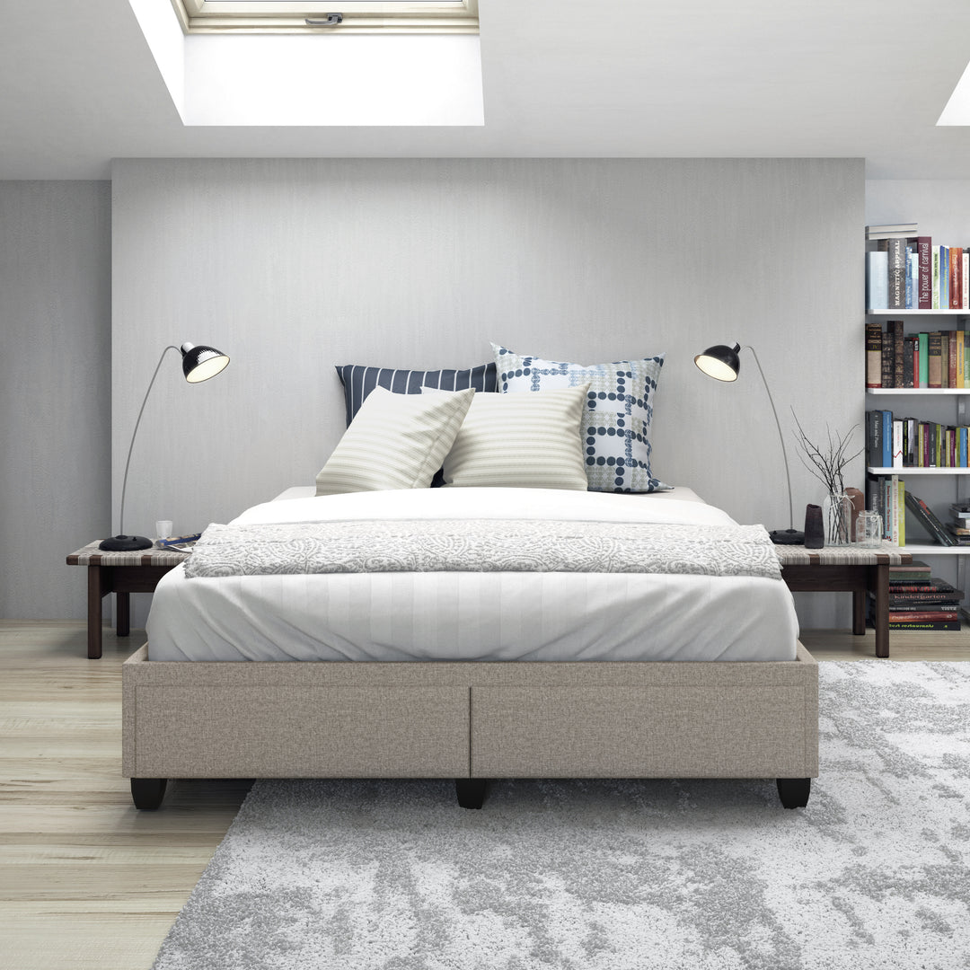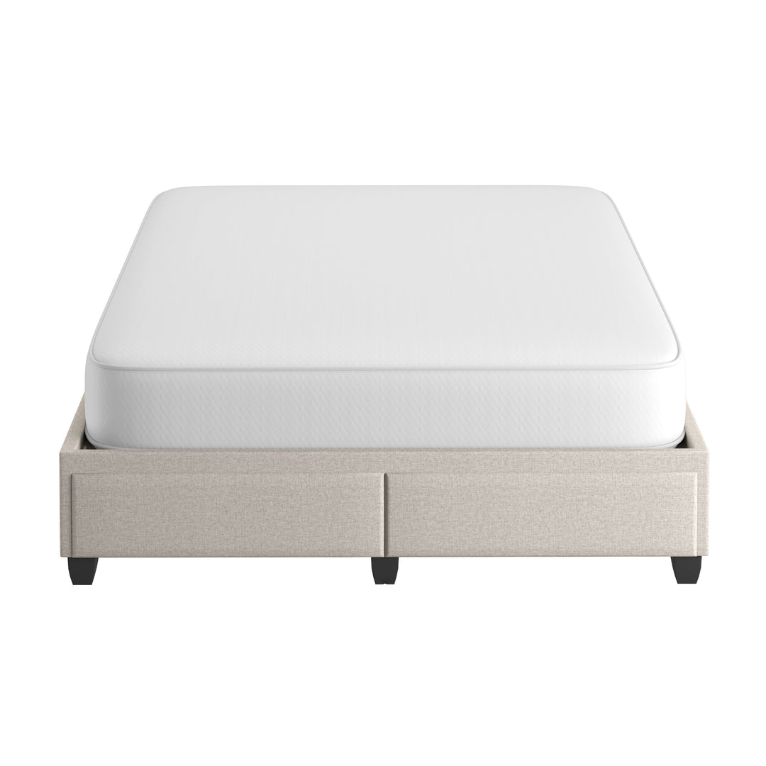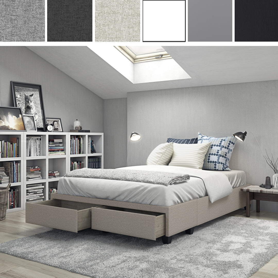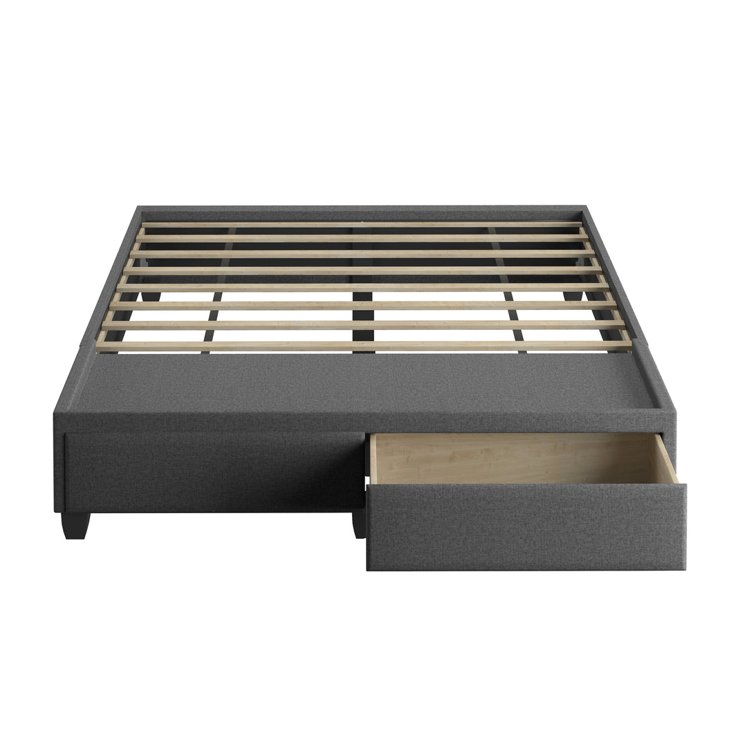 The Modena / Parma platform storage bed combines minimalist style with convenient double drawers at the foot of the bed. The solid storage drawer section comes pre-assembled and works with the 8 cross slats for durable support.