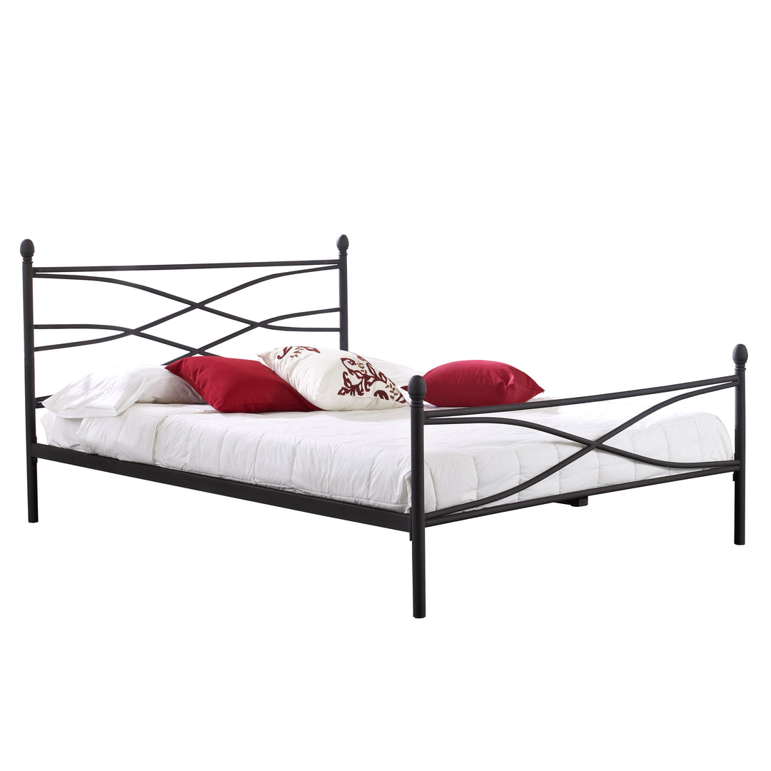 The Rosalyn Metal Platform Bed is the perfect stylish compliment to any bedroom. The unique black textured finish stands out on the transitional black inter-twining design. The contemporary look makes the Rosalyn Bed a stylish addition to any room. The Rosalyn Platform Bed eliminates the need for a box spring and bed frame. The sturdy design supports up to 700 lbs.