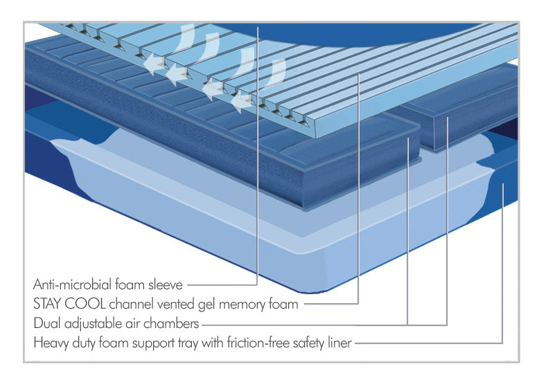 - Tricot Fabric Safety Liner Reinforces the Foam Side Rails and Prevents Friction Between the Air Cores and the Foam Tray